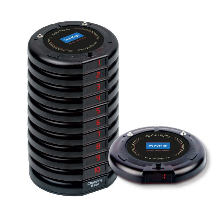 Dit all-in-one gasten oproepsysteem kan worden ingezet op locaties waar gasten even moeten wachten. Zodra de gast zich heeft gemeld of een bestelling heeft geplaatst wordt de coaster meegegeven. Met deze coaster kan de gast vrij rondlopen en elders wachten tot de gast wordt opgeroepen om zich te melden. De coaster is eenvoudig te activeren door het nummer in te voeren op de all-in-one transmitter.