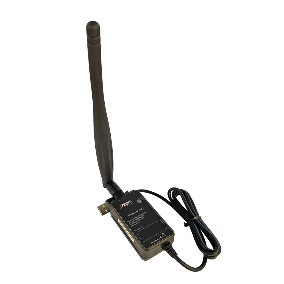 Deze (radiofrequentie) ontvanger krijgt vanaf de transmitter de bestelnummers door om deze vervolgens via een USB-aansluiting naar de mini-pc te vertalen.