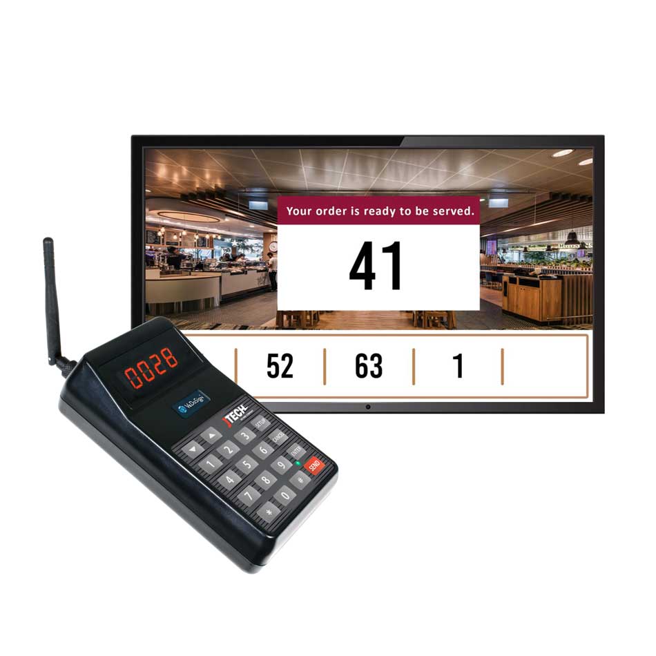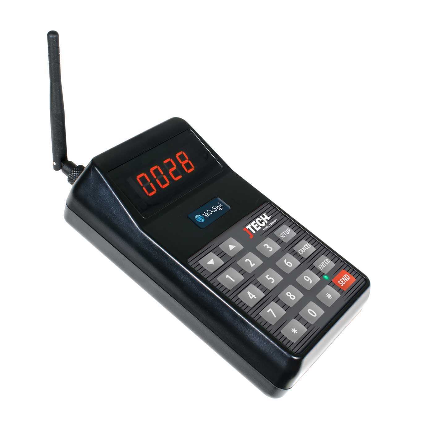 Op deze Basic 9B transmitter  voert u het 1 tot 4 cijferige coasternummer in en druk op SEND. De coaster, pager, buzzer van het oproepsysteem zal een licht-, tril-, en/of geluidssignaal geven zodat de gast weet dat  de bestelling gereed is en afgehaald kan worden.. Duidelijke en eenvoudige bediening om de coasters en/of pagers op te roepen.