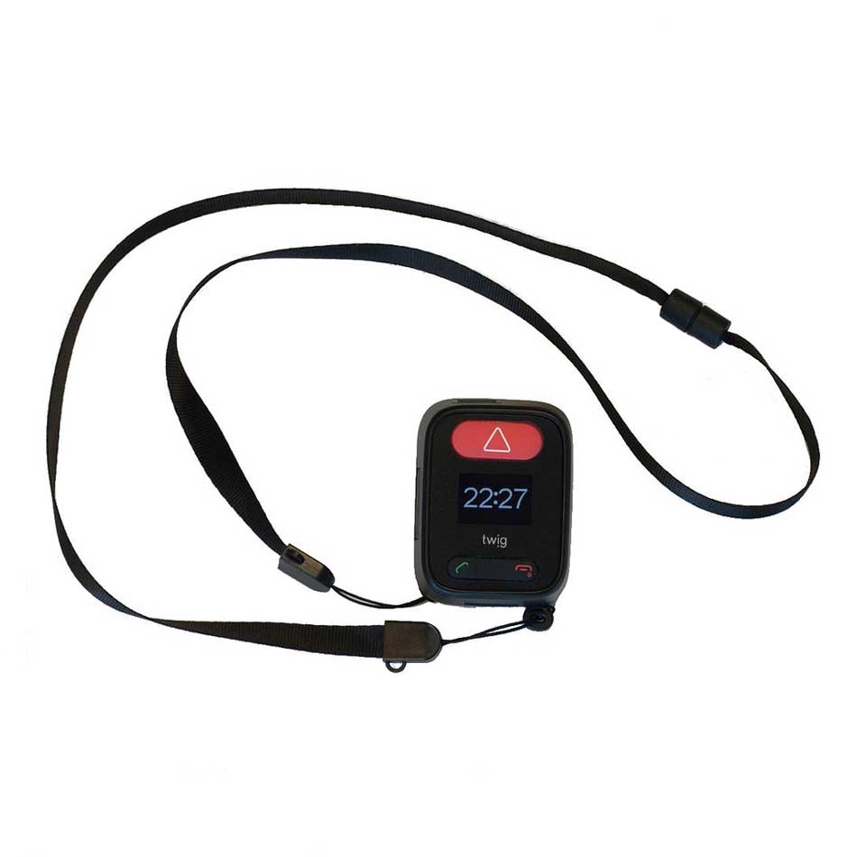 Met het zwarte TWIG noodknop draagkoord kunt u de TWIG draadloze noodknop gemakkelijk om uw nek dragen. Ideaal voor in de zorg.